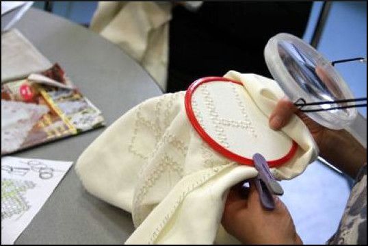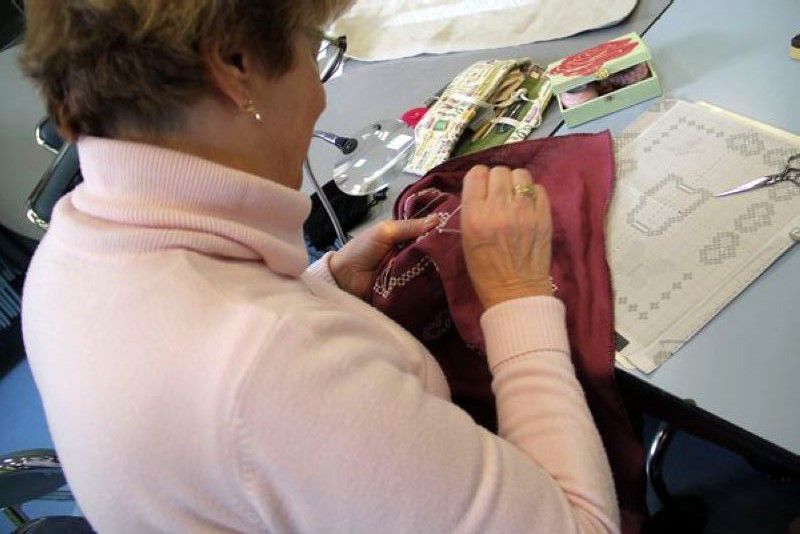 Point de croix, broderies Hardanger (broderie norvégienne), Myreschka (broderie russe), points traditionnels (tige, nœud, palestrina…), création autour du fil (sacs)...