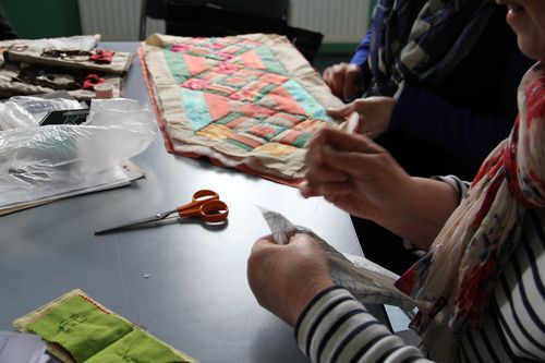 1 règle, 1crayon pointe fine, 3 ou 4 feuille bristol quadrillé oucarton fin, 1 feuille papier verré fin, 1paire de ciseaux couture et papier, quelques crayons de couleur, un dé, épingles fines, aiguille fine patchwork fils assortis au tissu, 30 cm de tissu uni couleur, 30 cm d'imprimé couleur asorti, 50cm tissu écru ou clair, tissu coton (indispensable de laver et repasser avant le 1er cours- éliminer les tissus qui déteignent) Première séance : réalisation d'un coussin
