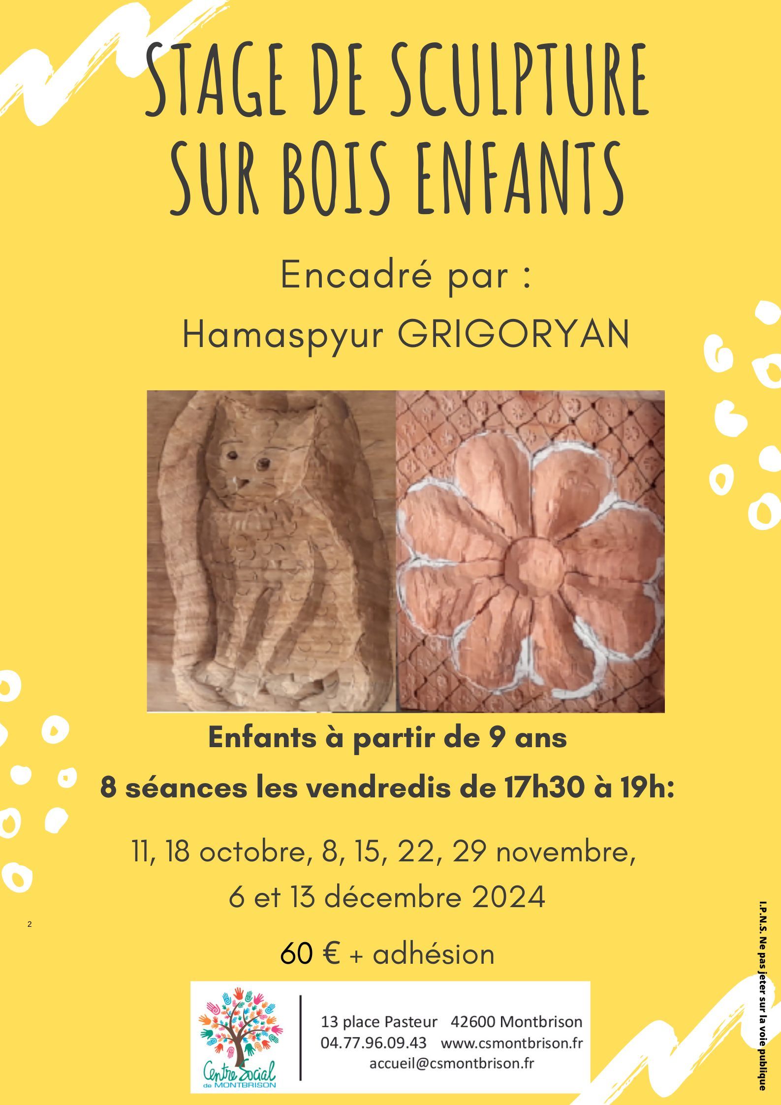 SCULPTURE SUR BOIS ENFANTS + 9 ANS : Il reste des places