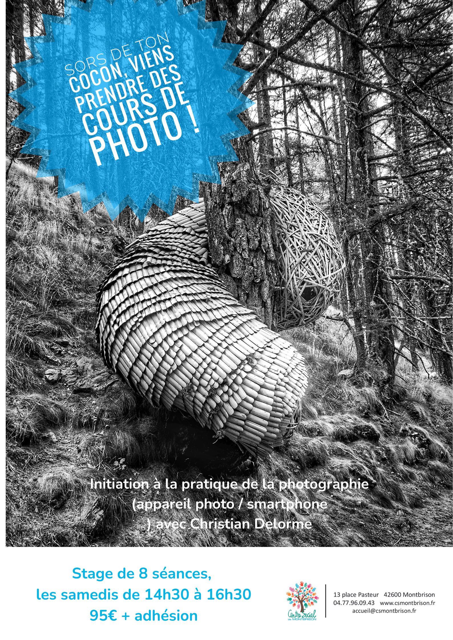 Sors de ton cocon, viens prendre des cours de photos ! Christian Delorme est un photographe auteur. Le reportage, les portraits ainsi qu'un travail artistique sont ses domaines d'activité. Il vous propose de le suivre dans une initiation à la pratique de la photographie avec votre appareil photo ou smartphone. 8 séances.