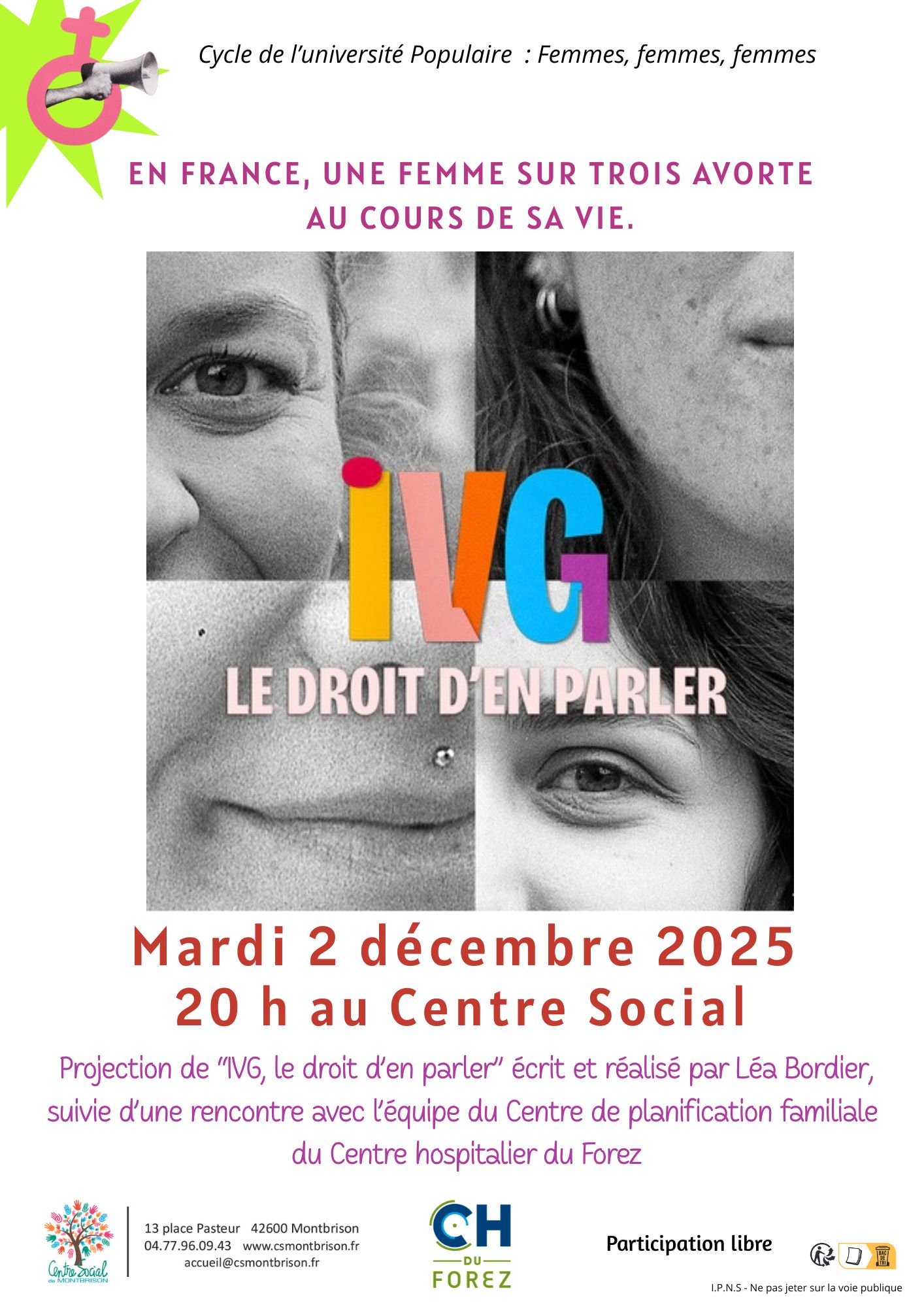 « L’IVG, le droit d’en parler », mardi 2 décembre à 20h au Centre Social.