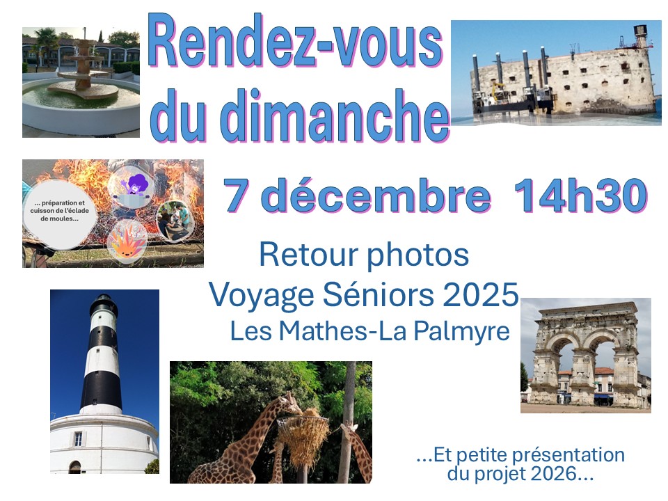 Dimanche 7 décembre, retour en photos du voyage seniors à la Palmyre et présentation du projet de vogage 2026.